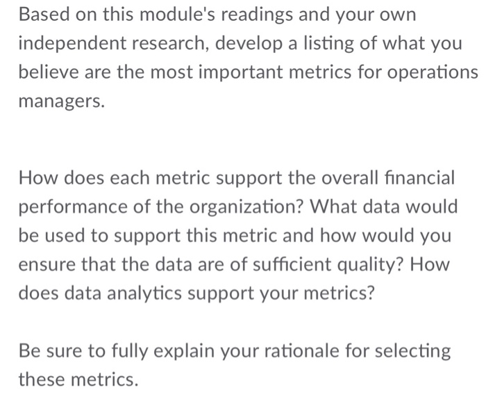 Develop A Listing Of What You Believe Are The Most Important Metrics For Operations Managers Homeworkden Com