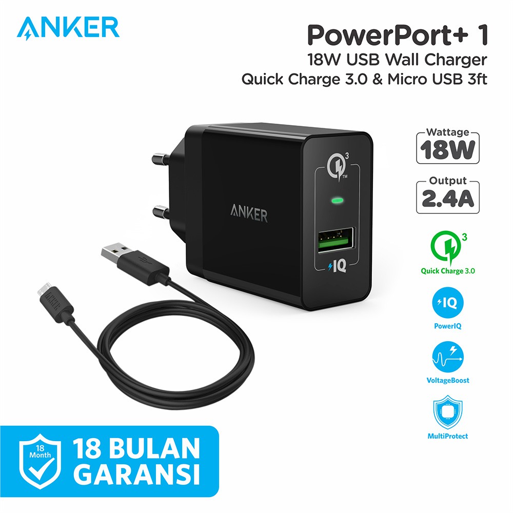 Wall Charger Anker Powerport 1 Quick Charge 3 0 Powerline 3ft 0 9m Micro Usb B2013 Shopee Indonesia