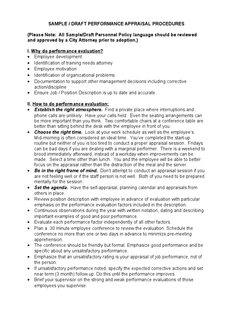 Sample Employee Evaluation Performance Appraisal Psychological Concepts